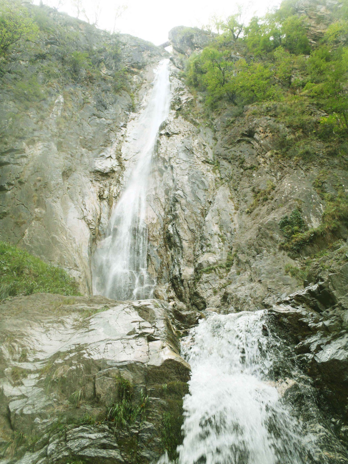 En arrivant au niveau de la passerelle, vous trouverez un relais suspendu qui vous amènera dans une belle vasque avec sa main courante à faire. Vous trouverez en rive droite un relais pour faire la grande cascade de 90 mètres. Vous pourrez difficilement voir le bas de la cascade, qui souffle avec ses embruns.